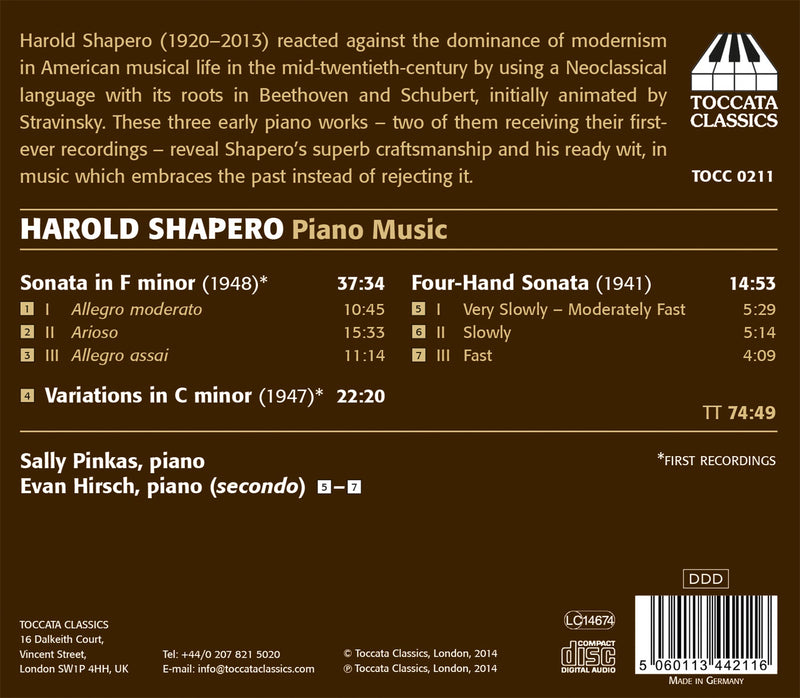 On SaleToccataShapero: Piano Music / Sally Pinkas