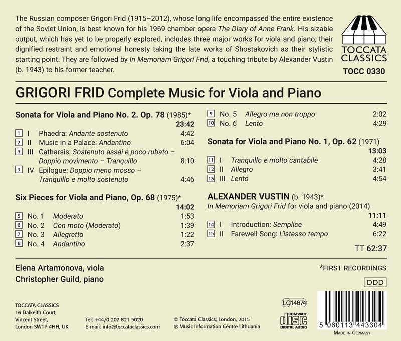 On SaleToccataFrid: Complete Music for Viola and Piano / Artamonova, Guild