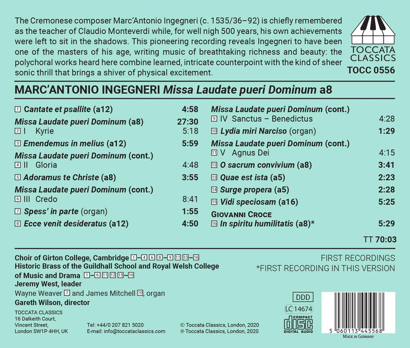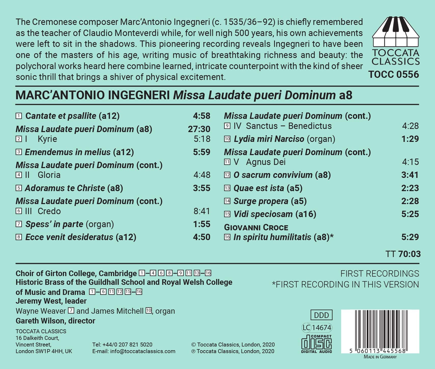 The Cremonese composer Marc'Antonio Ingegneri (c. 1535/36-92) is chiefly remembered as the teacher of Claudio Monteverdi while, for well nigh 500 years,...
