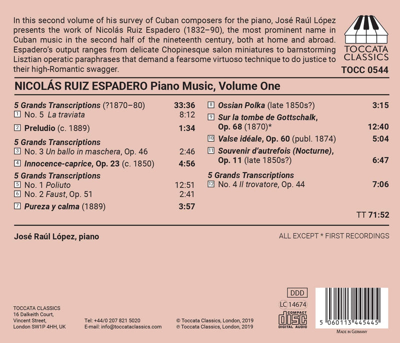 In this second volume of his survey of Cuban composers for the piano, Jose Raul Lopez presents the work of Nicolas Ruiz...