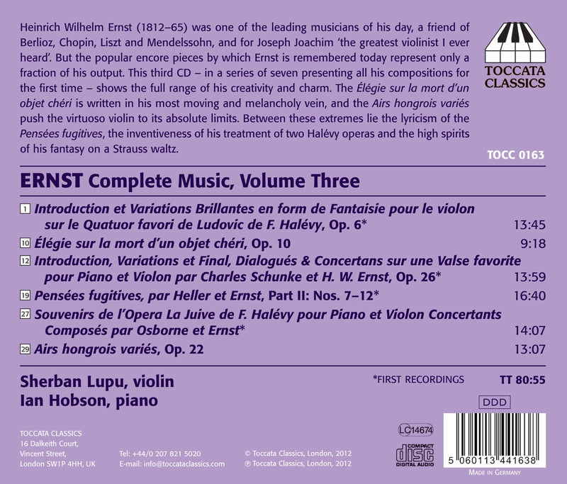 ToccataErnst: Complete Music For Violin & Piano, Vol. 1