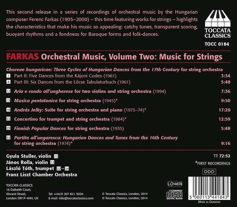 ToccataFerenc Farkas: Orchestral Music, Vol. 2 - Music For String Orchestra