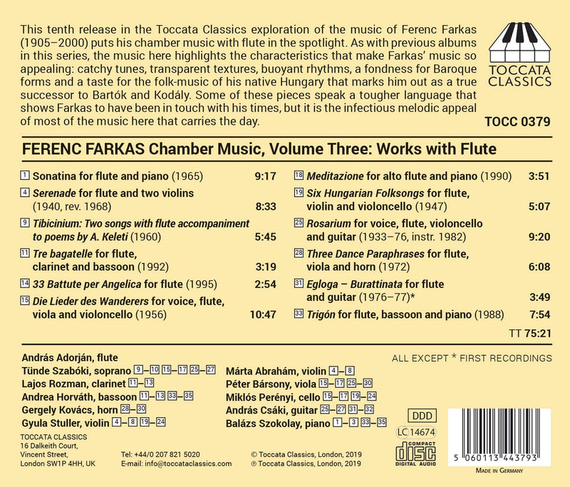 ToccataFarkas: Chamber Music, Vol. 3 - Works with Flute / Adorjan