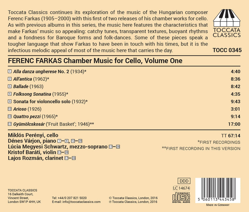 ToccataFarkas: Complete Chamber Music for Cello, Vol. 1 / Perenyi