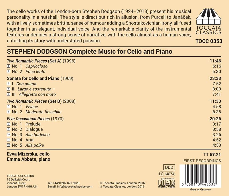 The cello works of the London-born Stephen Dodgson present the musical personality of this much-loved composer in a nutshell. Dodgson's style is...