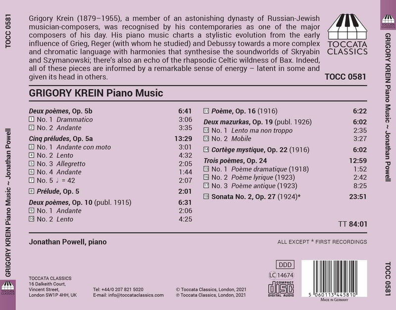 ToccataGrigory Krein: Piano Music / Jonathan Powell