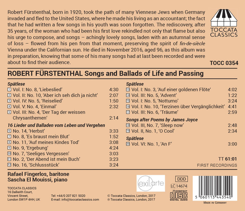 On SaleToccataFurstenthal: Songs & Ballads of Love & Passing / Mouissi, Fingerlos