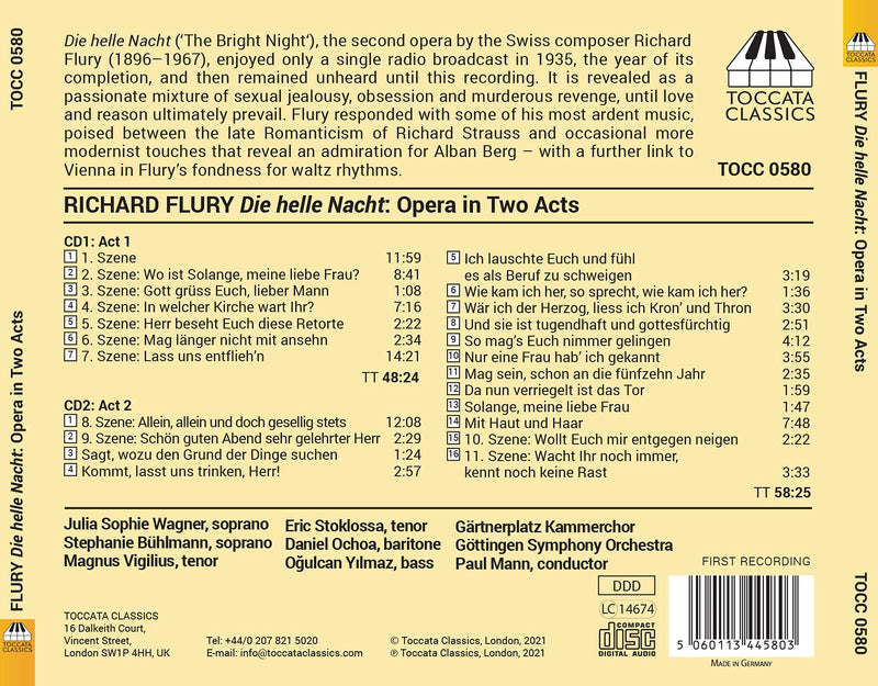 On SaleToccataFlury: Die helle Nacht - Opera in Two Acts / Mann, Gärtnerplatz Chamber Choir, Göttinger Symphonie Orchester