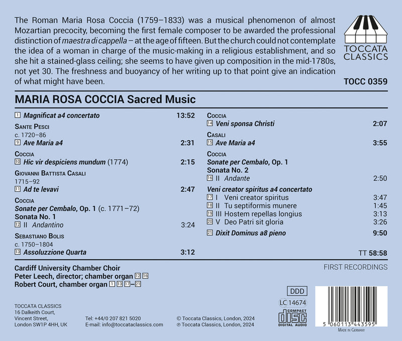 The Roman Maria Rosa Coccia (1759-1833) was a musical phenomenon of almost Mozartian precocity, becoming the first female composer to be awarded...
