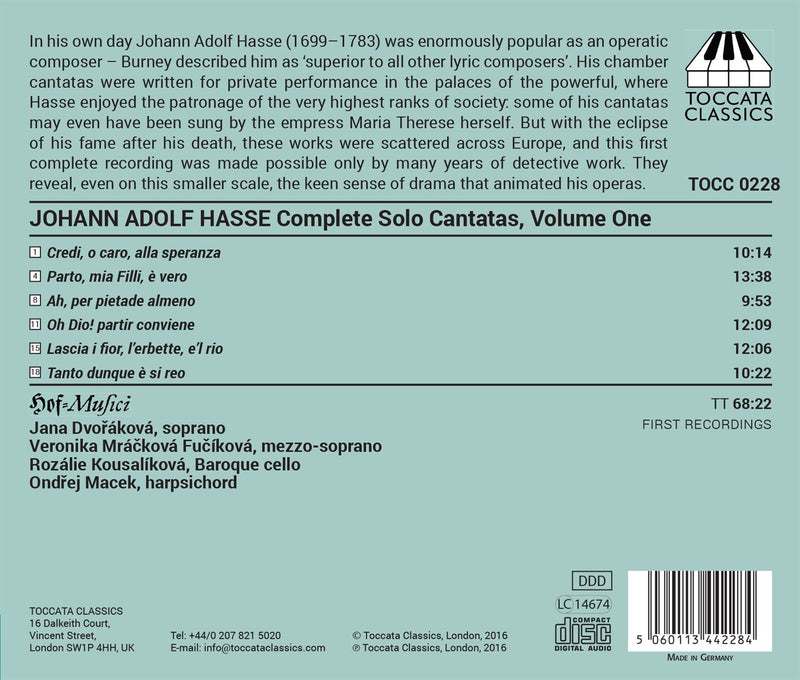 ToccataHasse: Complete Solo Cantatas, Vol. 1