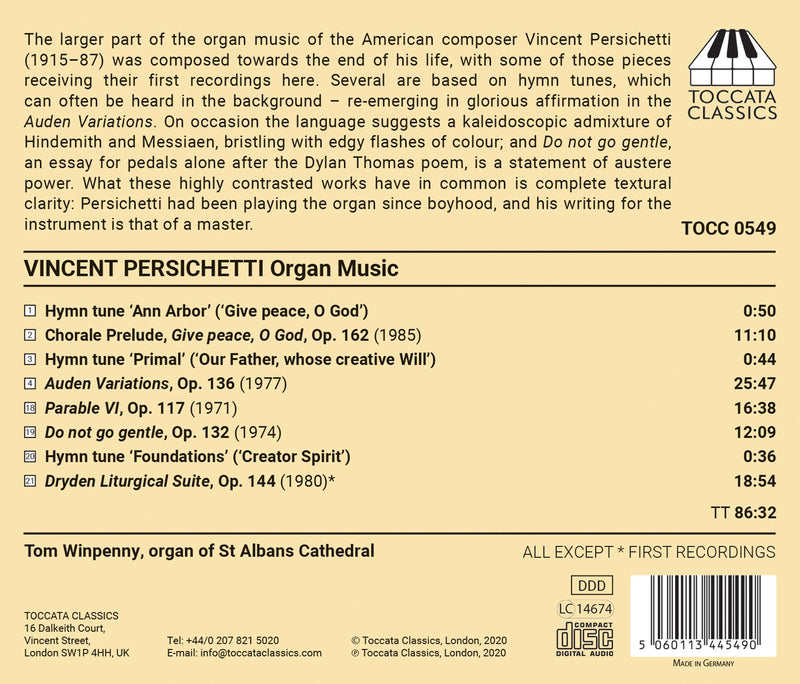 The larger part of the organ music of the American composer Vincent Persichetti (1915-87) was composed towards the end of his life,...