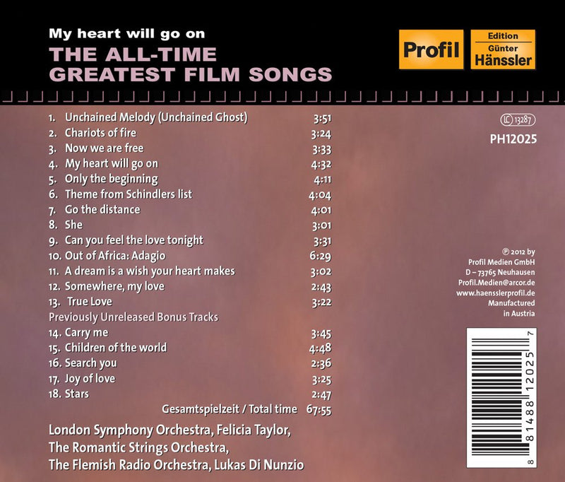 The London Symphony Orchestra along with Felicia Taylor presents this wonderful collection of the all-time greatest film songs, featuring unforgettable songs such...