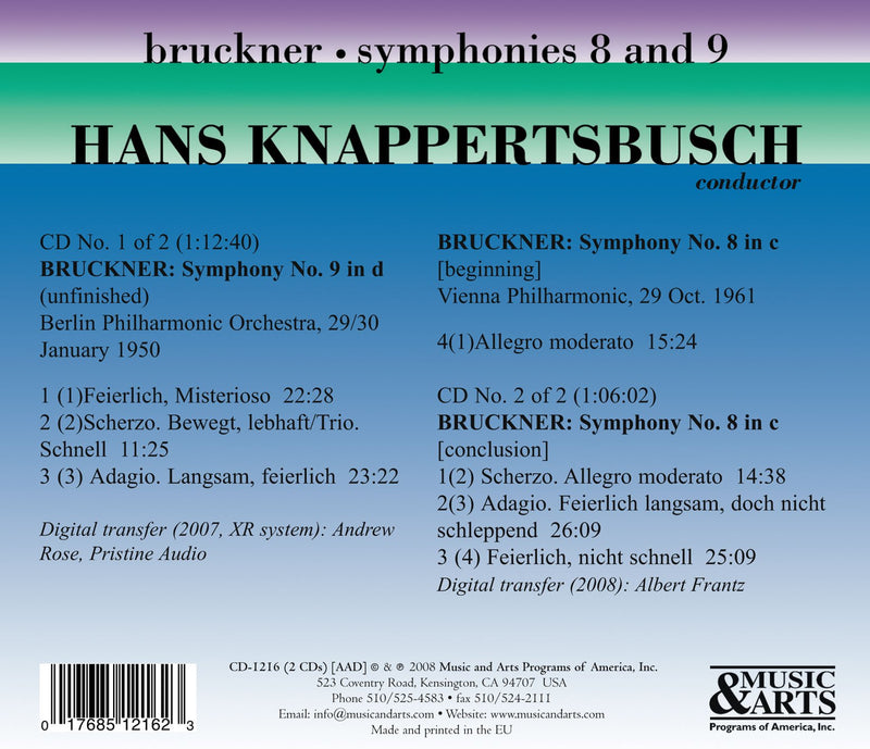 On SaleMusic and Arts Programs of AmericaKnappertsbusch Conducts Bruckner: Symphonies No 8 & 9