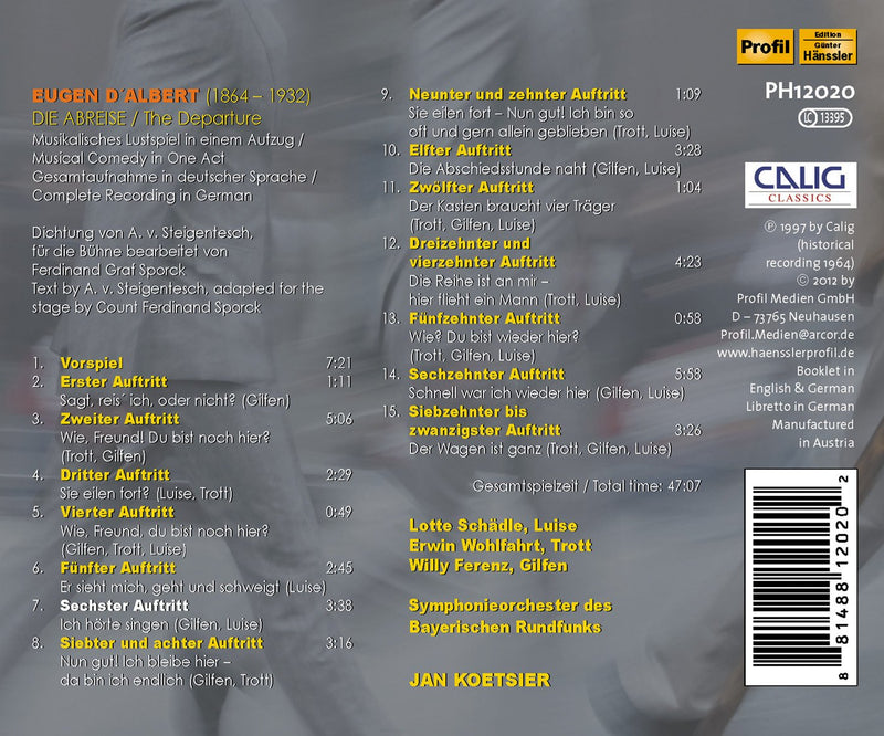On SaleProfilEugen D'Albert: Die Abreise (The Departure)