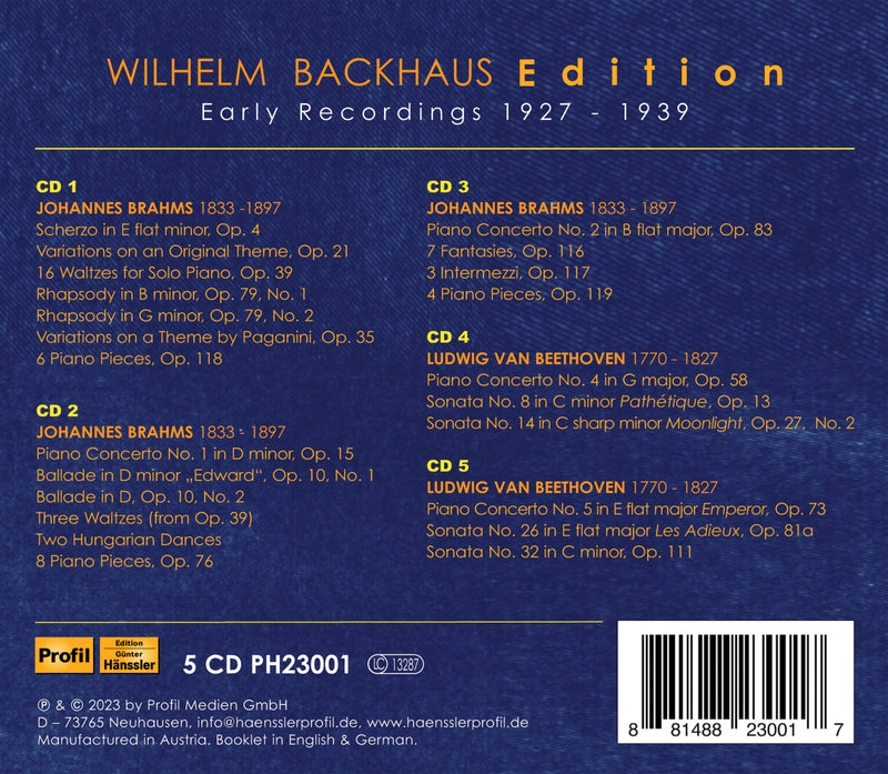 On SaleProfilWilhelm Backhaus Edition - Early Recordings 1927-1939