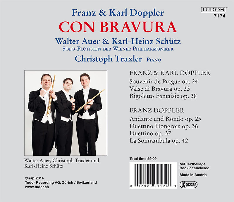 TudorFranz & Karl Doppler: Con Bravura•Walter Auer and Karl-Heinz Schütz, both solo flutists of the Vienna Philharmonic, offer a program of virtuoso flute duos originally composed by...