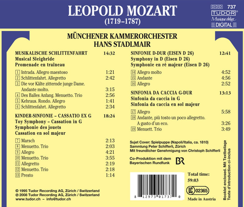 L. MOZART Divertimento in F, “Musical Sleigh Ride.” Cassation in G, “Toy Symphony.” Symphonies: in D; in G, “ Sinfonia da caccia”...