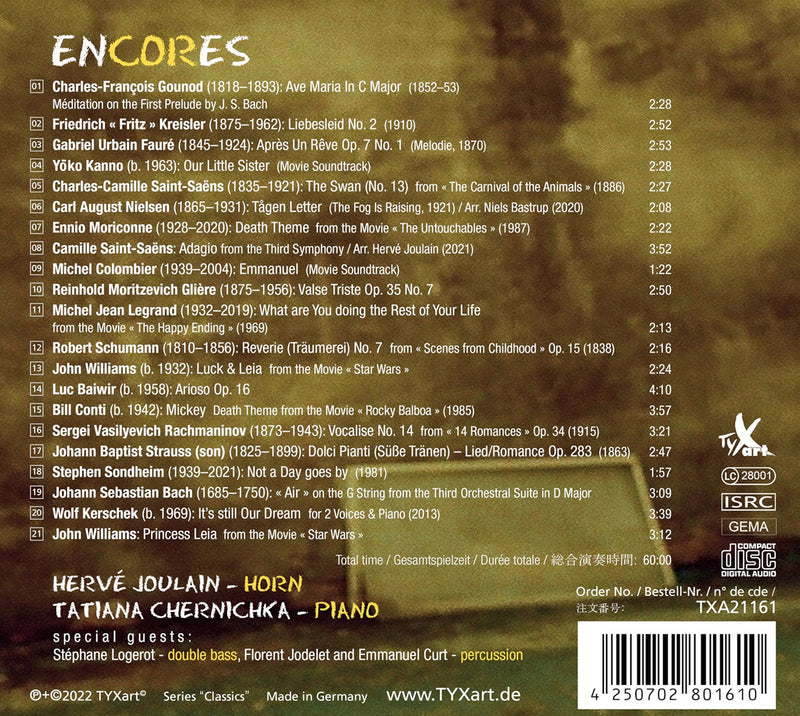 TyxartBach, Saint-Saëns, J. Williams et al.: enCORes / Hervé Joulain & Tatiana Chernichka