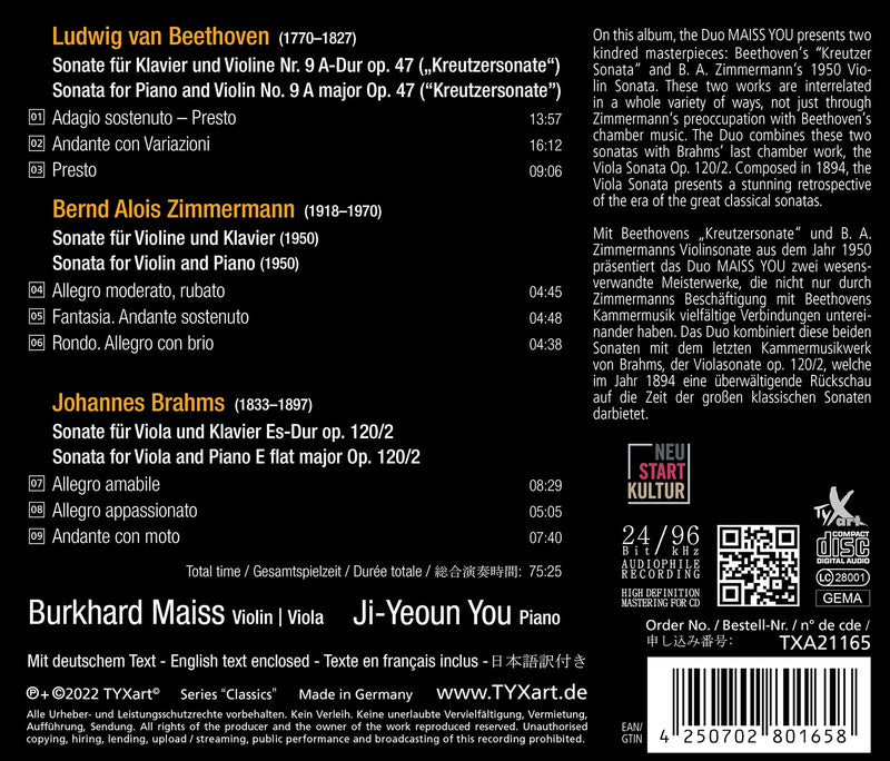 TyxartBeethoven, Brahms, Zimmermann: Sonaten fur Viola & Klavier / Duo MAISS YOU