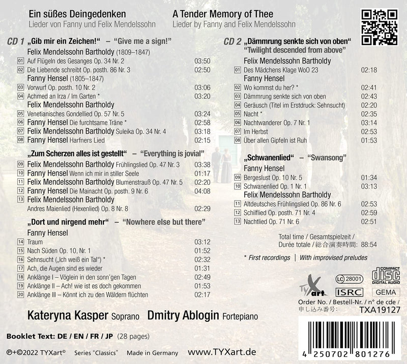 TyxartMendelssohn-Bartholdy & F. Hensel-Mendelssohn: Ein susses Deingedenken – A Tender Memory of Thee