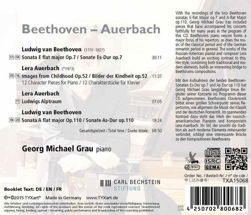 TyxartBeethoven: Piano Sonatas, Opp. 7 & 10 - Auerbach: 12 ImagesPianist Georg Michael Grau presents this outstanding album including works by Beethoven and Auerbach. Beethoven’s Sonatas Op. 7 & Op 110 are...