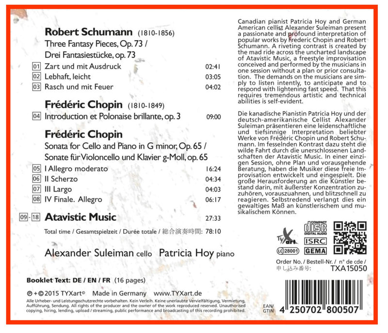 TyxartAtavistic MusicCanadian pianist Patricia Hoy and American cellist Alexander Suleiman collection is an intriguing blend of transcriptions of popular works by Frederic Chopin...