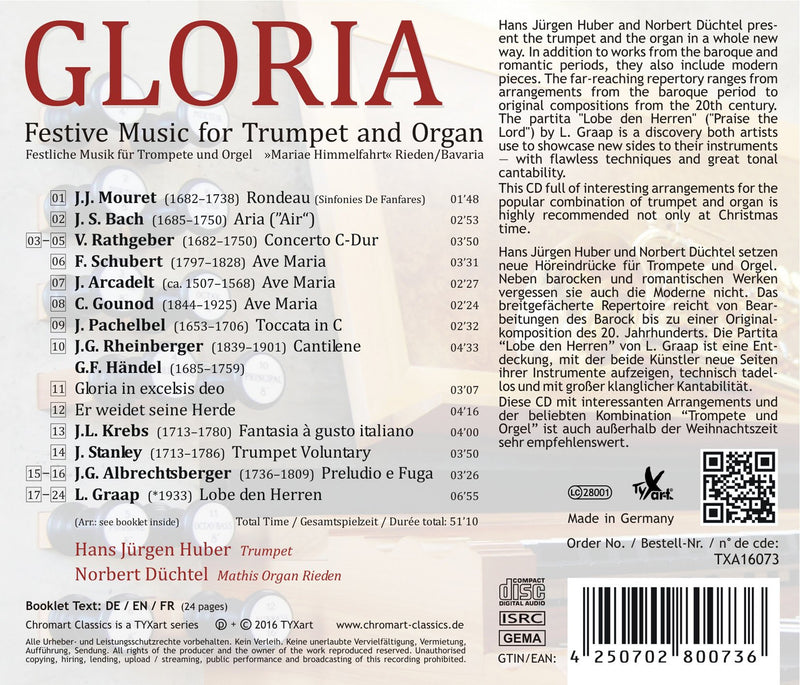 On SaleTyxartGloria: Festive Music for Trumpet & OrganHans Jürgen Huber and Norbert Düchtel present the Trumpet and the Organ in a whole new way. In addition to works from...
