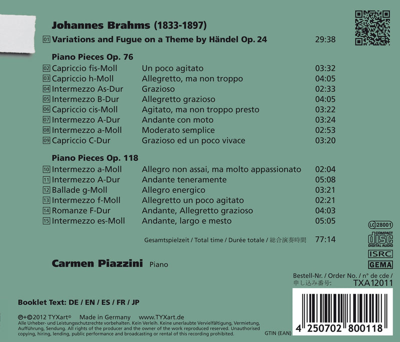 On SaleTyxartBrahms: Piano WorksOn this CD Argentinean pianist Carmen Piazzini presents Brahms' late pianistic works with a luminescence and poetic sensibility of tone that give...