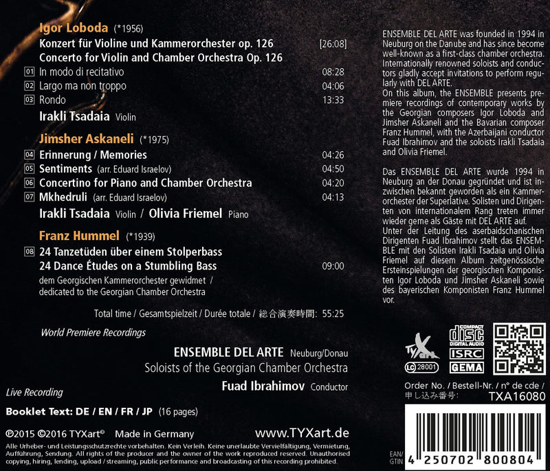 TyxartThe Bavarian Georgians (Live)Founded in 1994, Ensemble Del Arte is an internationally known chamber orchestra who frequently performs with renowned conductors and soloists. From Baroque...