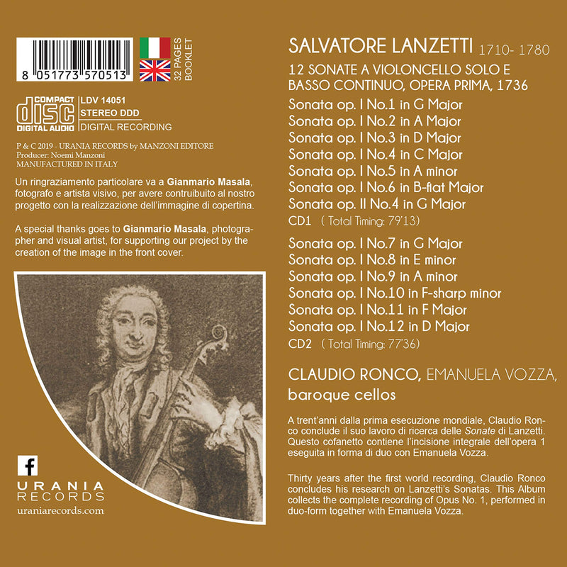 Urania RecordsLanzetti: 12 Cello Sonatas, Op. 1