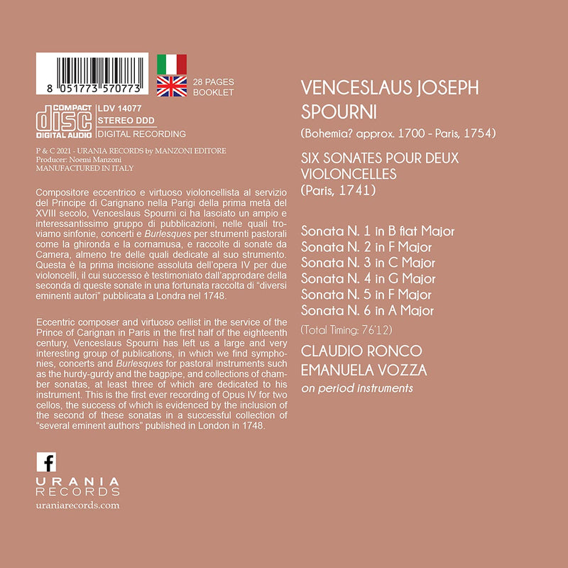 Urania RecordsSIX SONATAS FOR TWO CELLOS