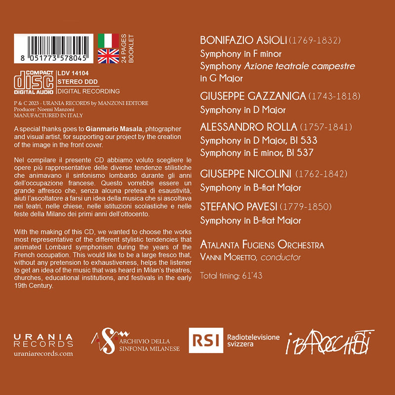 Urania RecordsSinfonie milanesi after the French Revolution / Moretto, Atalanta Fugiens Orchestra