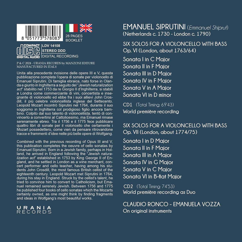 Urania RecordsSiprutini: Cello Sonatas, Op. 6 & 7