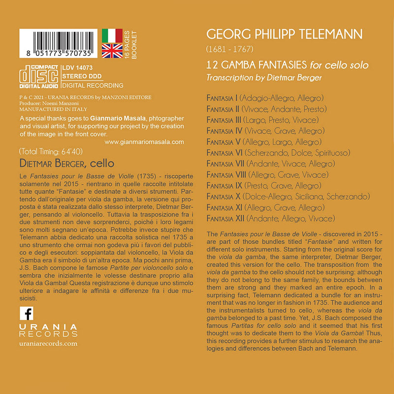 Urania RecordsTelemann: 12 Gamba Fantasies (for cello solo) / Berger