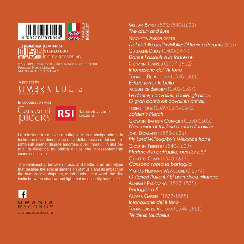 The Umbra Lucis Ensemble present an intriguing disc portraying the Anghiari Battle in works by Byrd, Dowland, Andreuccetti, Dufay, de Victoria, Hume...