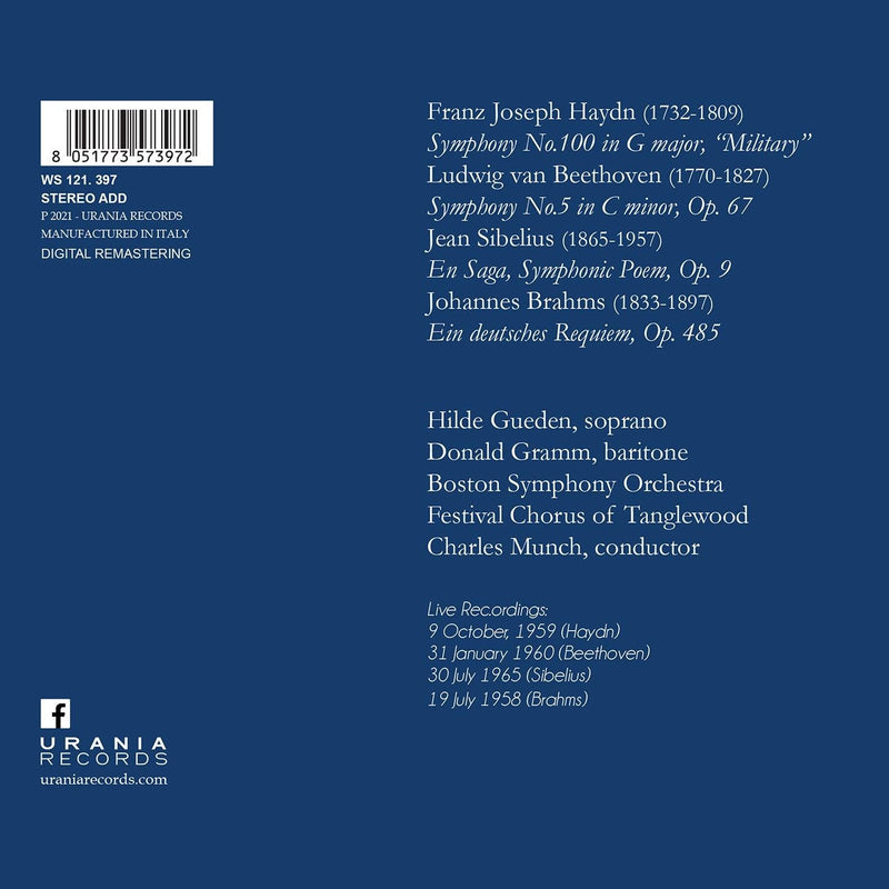 Urania RecordsHaydn, Beethoven, Brahms, Sibelius: Charles Munch in Concert / Munch, Boston Symphony Orchestra