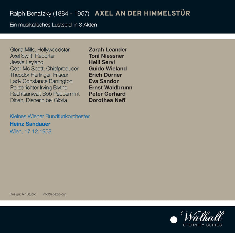 Axel an der Himmelstür, Ralph Benatzky’s (1884-1957) operetta that had its premier in 1936, made an overnight star of soprano Zarah Leander,...