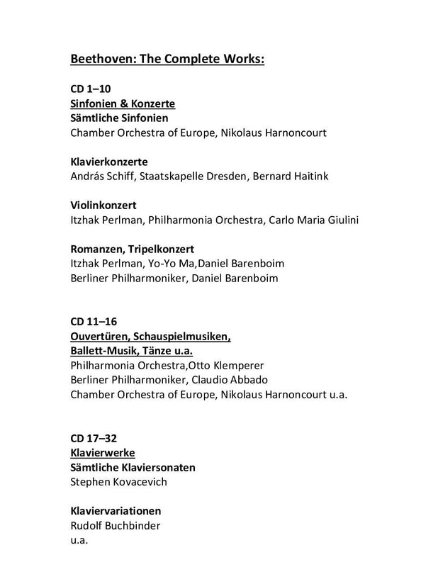 Limited 80 CD box set. Doing full justice to Beethoven's awe-inspiring, but profoundly humane genius, this is Warner Classics' first-ever complete edition...