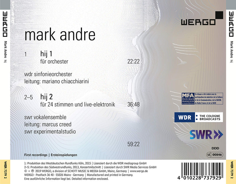 Mark Andre's music is introverted and fragile, but it speaks to the listener with a shy intensity: hij! This is the title...