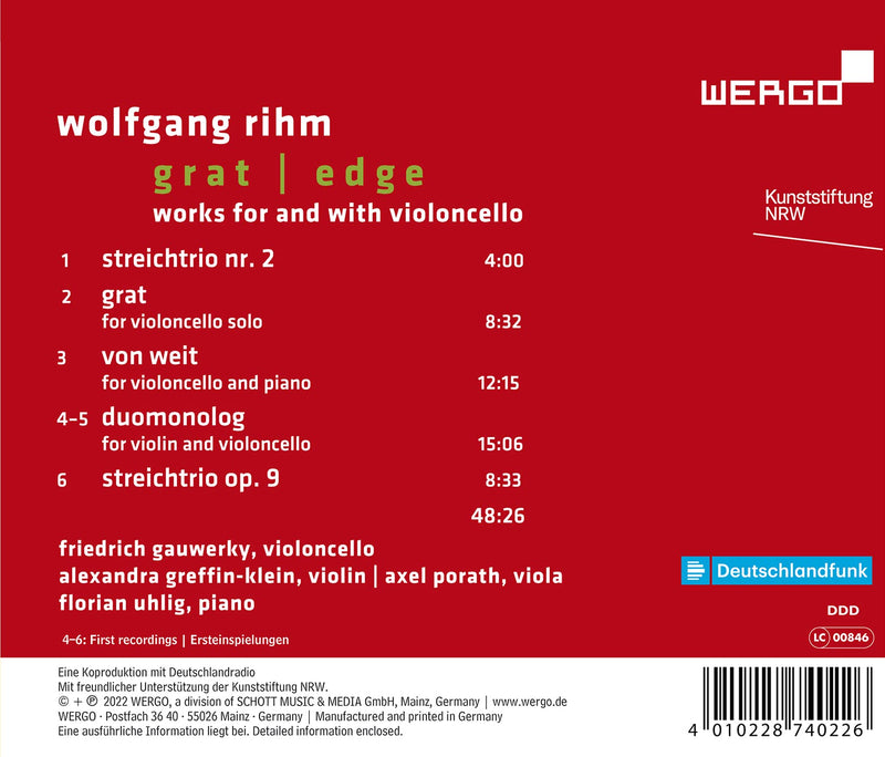WergoRihm: Grat/Edge - Works for & with Cello / Gauwerky, Greffin-Klein, Porath, Uhlig