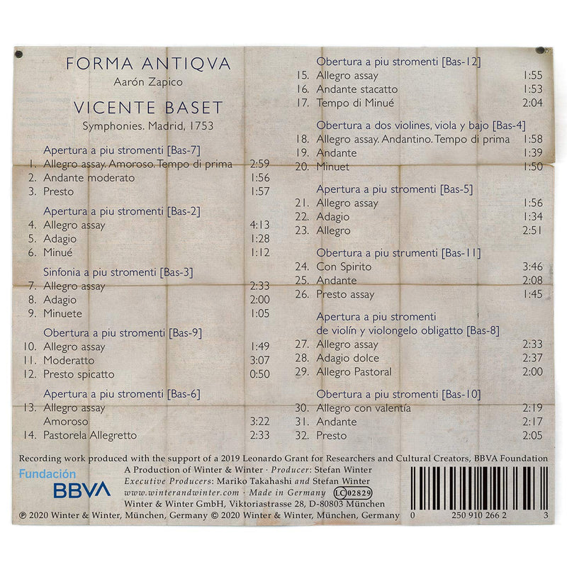 On SaleWinter & WinterVicente Baset: Symphonies - Madrid, 1753 / Forma Antiqva, Aaron Zapico