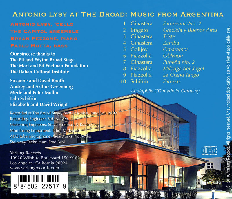 Yarlung RecordsGinastera, Golijov, Piazzolla: Antonio Lysy at The Broad - Anniversary Edition / Lysy, Pezzone, Levy, Motta, Capitol Ensemble