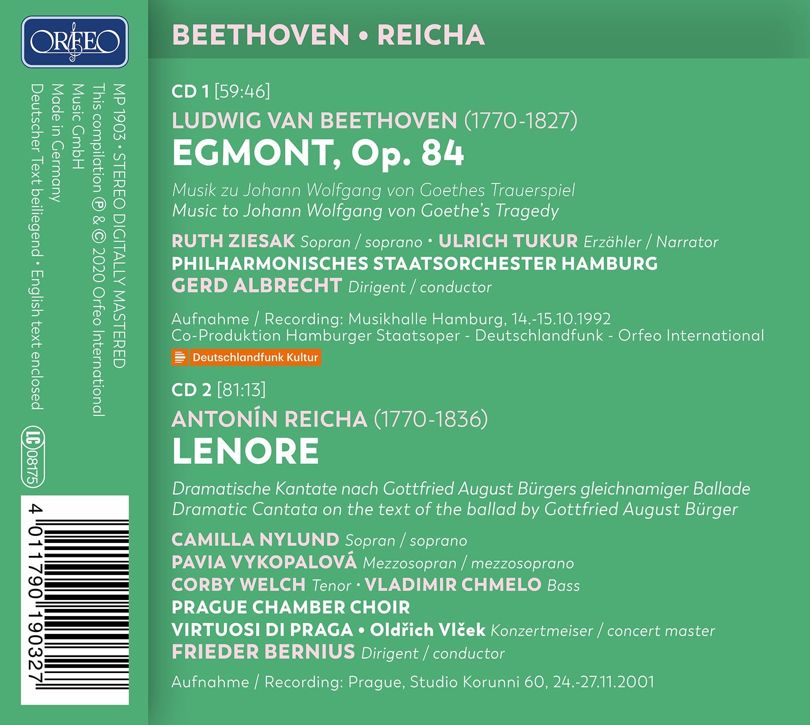 Beethoven: Egmont - Reicha: Lenore / Bernius, Albrecht